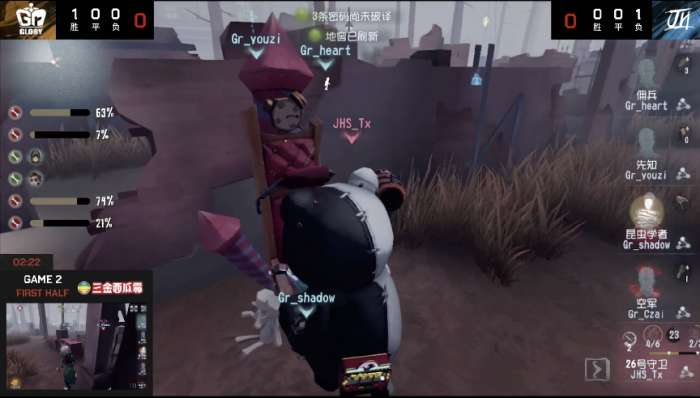 监管者Gr战队——ban:机械师 前锋 昆虫学者 pick:Gr_ppx雕刻家