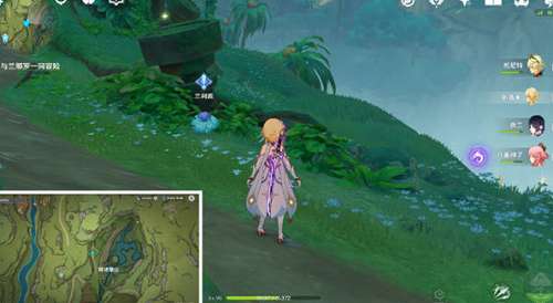 进入非拉洞,草元素射击众叶觉蕊开启穿梭,看见水中央有仙灵,跟随,发现放水机关下方有另一个仙灵,均跟随,注意在弹弹菇弹性不足时使用雷元素激化。