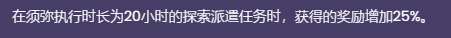 在须弥执行时长为20小时的探索派遣任务时,获得的奖励增加25%。