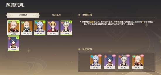 试用角色队伍推荐: