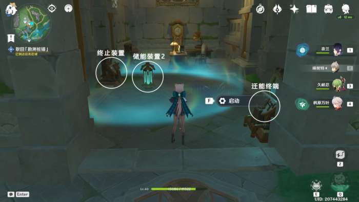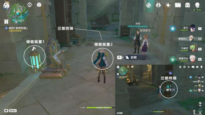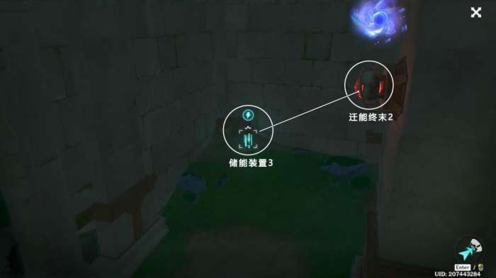 2、接着需启动储能装置1来拾取门内的储能装置2,然后去往北边启动迁能终端;
