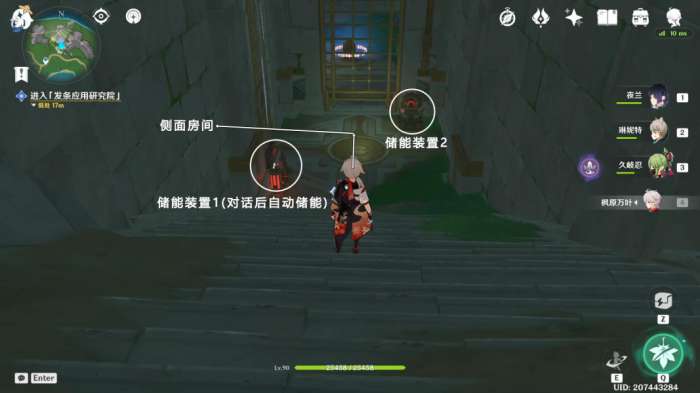 2、接着需去往遗迹底部找到储能装置1,然后进入剧情对话,结束后需去往侧面的房间内;
