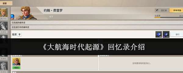 软件提交 专题合集 热门手游大航海时代起源回忆录是什么?说起大航海时代:起源,很多玩家第一反应,可能是那片无边无际的海洋,还有各种各样的提督角色。但其实游戏里有一个系统,很多人玩了好久都没太注意到,那就是回忆录。今天小编就带来大航海时代起源回忆录介绍。这个系统里面藏着不少好东西,值得好好聊一聊。