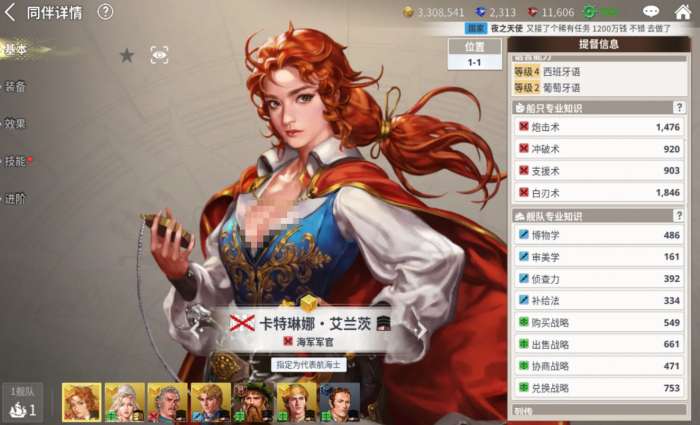 顺便说一下国服的一些福利。国服开服的首个提督是约翰·费雷罗,完成新手阶段之后,会直接送一张提督自选券,大概玩十五分钟左右就能拿到。自选券可以在卡特琳娜、阿尔、埃内斯托、奥托四位提督里选一个免费带走。这四位提督也可以用蓝钻购买,每位五千蓝钻。另外国服还有一个比较大的改动,就是取消了抽卡模式,所有提督和航海士都可以通过商城直购、红钻购买、旅馆招募或者活动等方式获得,旅馆招募里,甚至包含了原本需要付费的航海士。