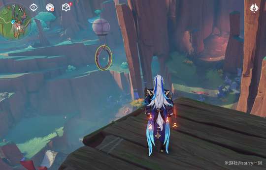 本任务的接取非常“奇特”,使用神之翼或魂附绒翼龙穿过空中的燃素环(在燃素环内还有一颗散失的火神瞳)后将自动接取本任务