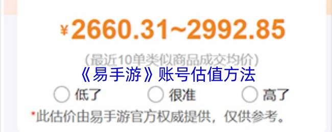 以上就是小编带来的易手游怎么估号?易手游账号估值方法,更多相关资讯教程,请关注pk游戏网。