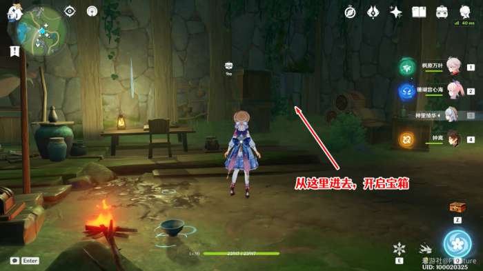 · 藏宝图:位于「万水之源·大枫丹湖」下图所示位置的贝壳中,但贝壳前面有透明屏障阻挡,需要绕到后面,从墙壁上的窗口进去,使用普通攻击将贝壳敲开,拾取里面的瓶子,即可获得藏宝图「利亚姆的高歌」。