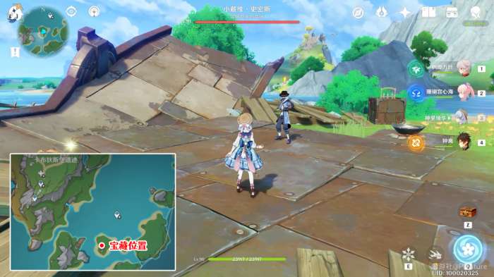 · 藏宝图:位于「万水之源·大枫丹湖」下图所示位置的遗迹墙角,使用普通攻击将贝壳敲开,拾取里面的瓶子,即可获得藏宝图「巴罗的期冀」。