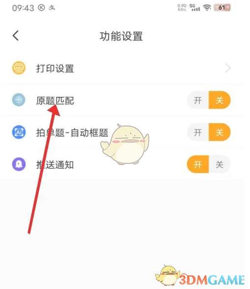 3、最后进入设置中心后,点击上方‘原题匹配’,勾选右边的按钮,即可原题匹配功能开启成功。