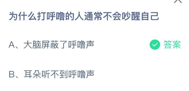 以上就是为什么打呼噜的人通常不会吵醒自己,支付宝蚂蚁庄园2025年12月19日答案最新,更多精彩内容,请点击关注pk游戏网更新!