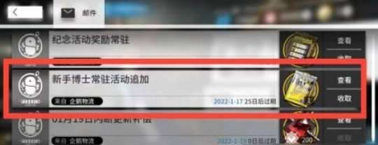 请选择在新手博士活动中添加常驻邮件并进行收取。