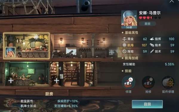 烹饪辅助,烹饪航海士,还有改造舱室厨房并委任高航海属性航海士提升