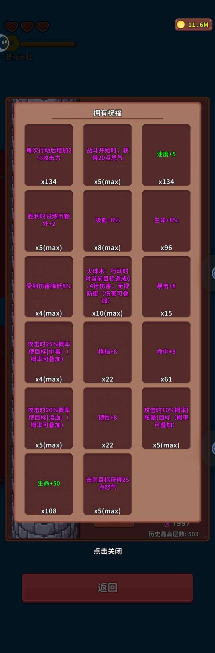爬塔开局自带自选祝福,开局20怒(5次MAX),和命中8祝福,命中溢出后就是增伤,因此不需要开局怒气和增伤