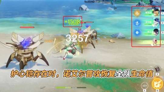 【诺艾尔】有以下优势:①极大的普攻范围,能够弥补娜维娅在面对群攻时的劣势,而且收集晶体的稳定性比娜维娅高;②战技可以为全队恢复生命值,即使队友剩下0点生命值,也可以快速为其叠加增伤层数;③大招效果不会消失,可以自由切换队友并重复使用。