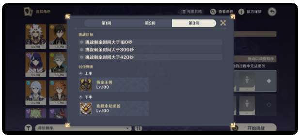 强制带岩元素角色,除非伤害够高能在黄金王兽套盾前就秒掉。黄金王兽一探头就可以打上伤害了,一定要抓紧各种时间打伤害,前期打得越多越能减少破盾后打不完狗又飞起来的可能。