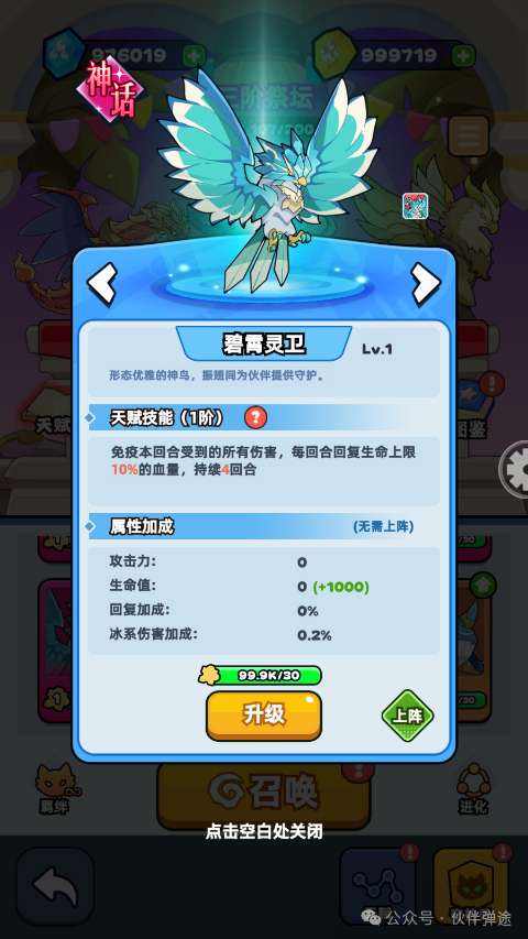 3. 神话守护灵推荐:碧霄灵卫(保命,免伤+回血)和青翎鹰兽(连击,秒拿1500连击)
