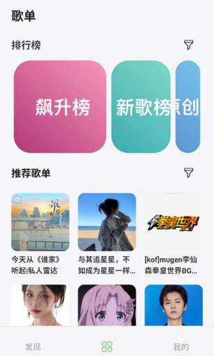 点击中间的歌单选项还能看到许多优质的资源,许多精彩的榜单以及歌单内容能够查看;