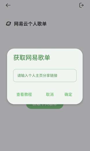 点击后会弹出歌单填写界面,在这里输入网易云个人主页的分享链接即可获取歌单,qq歌单同理;