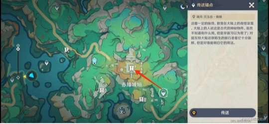 我们传送到赤璋城垣右下角的传送锚点,往地图西南方向走来到遗迹1,随后往地图西北方向走来到遗迹2