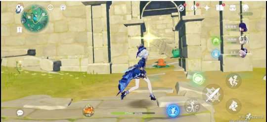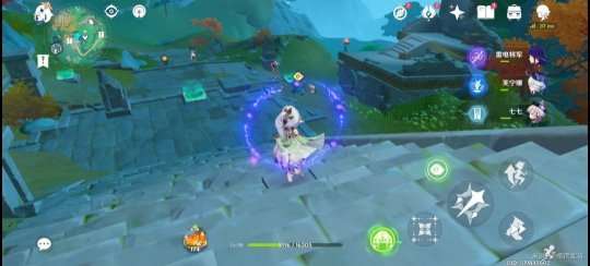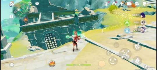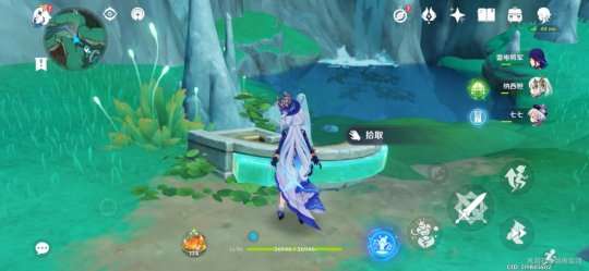 我们传送到赤璋城垣七天神像左下角的传送锚点,往地图东北方向沿着河岸走,这边我们来到亭子这边可以找到「玉玦碎片·左」