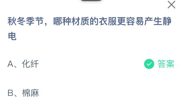 以上就是秋冬季节,哪种材质的衣服更容易产生静电,支付宝蚂蚁庄园2025年12月3日答案最新,更多精彩内容,请点击关注pk游戏网更新!