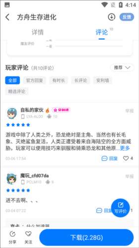 3、点击评论,即可在这里查看其他玩家发表的评论