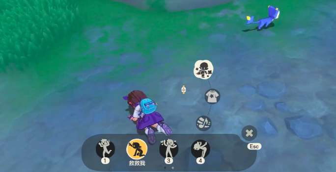 而要想恢复体力,其实在这款游戏中还打造了一个创新玩法,玩家可以先召唤出自己的专属宠物,然后按动作栏,使用第2页的动作2“救救我”这个动作,这样精灵就可以直接给玩家恢复一个魔力,在野外遇上比较友善的精灵也可以使用这种方法。