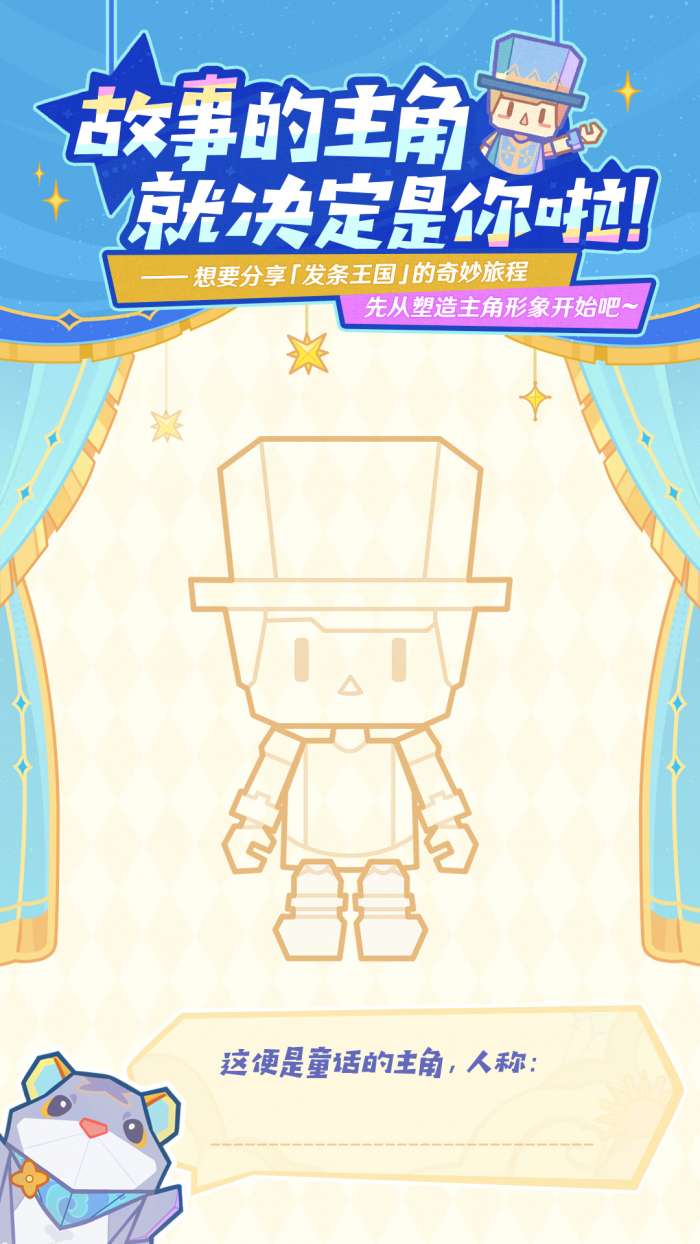 既然是童话故事,就把积木小人作为主角原型吧,至于把旅行中遇到的哪位伙伴刻画进来,就交给旅行者决定了!