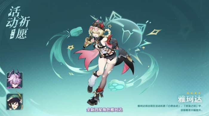然后就是6.2卡池角色登场顺序,就官方6.2前瞻公布的内容来看,6.2卡池上半up的角色分别是:杜林、温迪,新四星雅珂达也会在上半卡池陪跑。