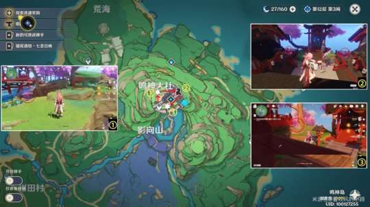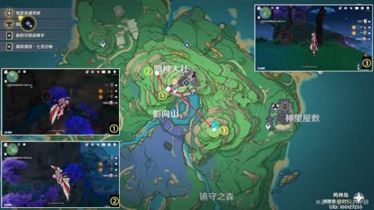 11.从鸣神大社楼梯下去,共5个(标点②下面那个可以最后采集,从雷神周本过去)