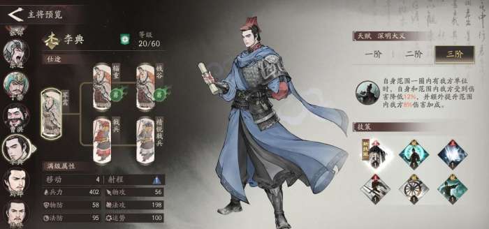 软件提交 专题合集 热门手游三国望神州李典怎么样?三国望神州玩法众多,甚至于实战还原度非常高,而后勤就是其中的设定之一,正所谓兵马未动粮草先行,选对后勤辅助能够帮助我们提升战力。今天带来的就是三国望神州李典的玩法介绍。其实好多新手前期觉得他是杰将就随便扔仓库,其实他三阶解锁增援机制后,减伤加治疗的组合能让战损直接大幅下降,而且他不用抢装备也不用吃资源,就靠站位和技能循环就能撑起全队生存。