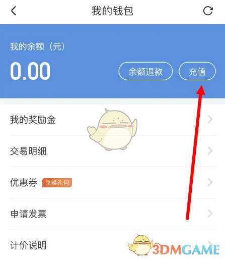 2、然后我们点击【钱包】再点击【充值】选项进入。