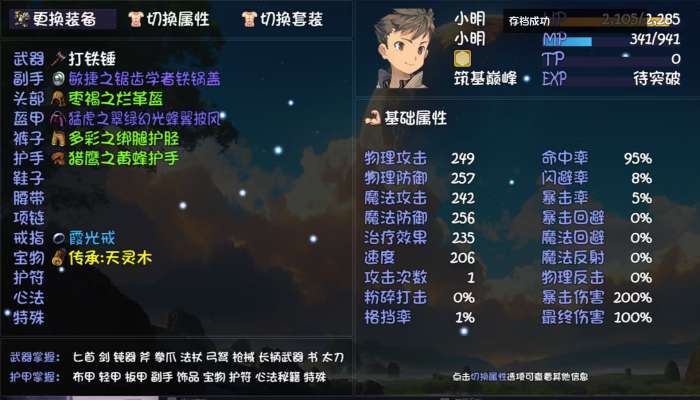 养成很快,装备基本都是筑基强者掉的,更好法杖在驱鬼里,更好护手在秘境里,更好腰带妖王掉,就不强求了