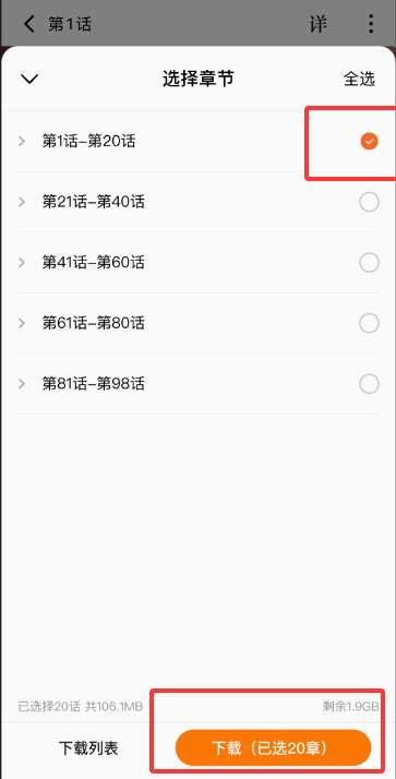 4、选择漫画章节,点击“下载”图标,即可下载漫画。
