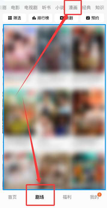 1、打开红果免费短剧APP,在点击下方的【剧场】,然后在页面上方找到【漫画】页面