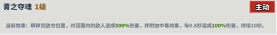 描述:瞬移到敌方位置,对范围内的敌人造成500%伤害,并附加中毒效果,每0.8秒造成100%伤害,持续10秒。