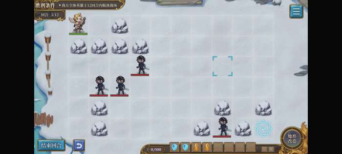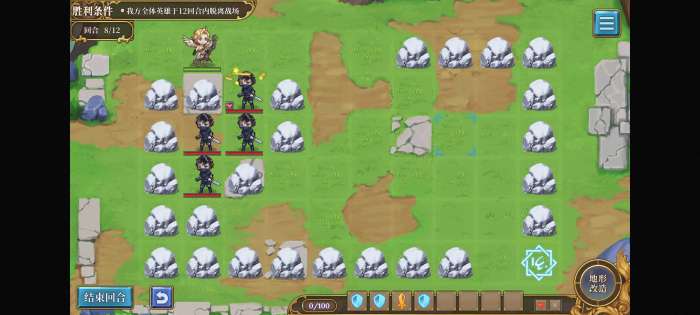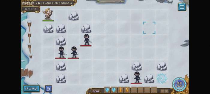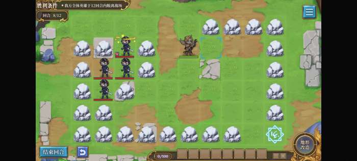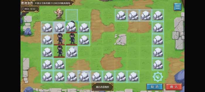 首先把刺客围住(注意第一次一定要把初始位置右边的石头向下移占住位置,否则逃跑空间不够),然后向右走一格并保存一个指令(不存好像也行),下回合打开口子砸晕最外面的刺客,之后就能溜之大吉。