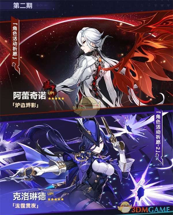 角色提升:第二期将提升阿蕾奇诺(仆人)和克洛琳德这两位角色的抽取概率。