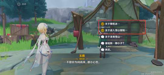 玉霞询问我们雪山中的冰怎么解决?交互“我想去看看那些冰”