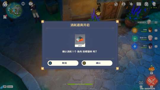 与其交互后,需要我们投喂一块鱼肉给小呜斯