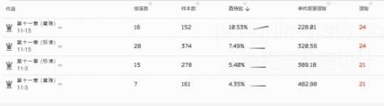 当前,第11章地图刚刚开放,得到【转质盐聚块】的概率很低,因此单个期望理智可能不太准确。根据综合考虑,11-15和11-3关卡都是可以刷的。同时,合成【转质盐聚块】需要用到的【转质盐组】也是这两个关卡的掉落,因此,即使是想合成的玩家也需要刷这两个关卡几次。