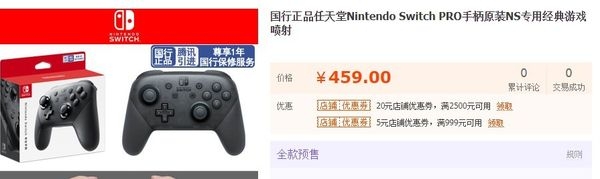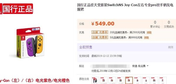 除了国行Switch主机外,店家还上架了国行Joy-Con和Pro手柄,售价分别为549人民币和459人民币,其中Joy-Con手柄包含5中不同配色。