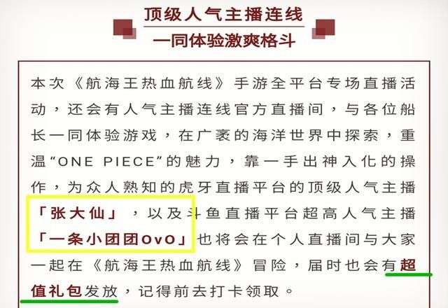 为什么?因为不是所有人都去看什么直播的,还是和海贼没关联的王者荣耀(另一个是绝地求生)直播。游戏的这波操作是不是很虎?