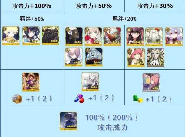 以上为本次活动的加成情况,三种卡池礼装分别对应三种商店素材的加成,活动奖励的礼装增加活动副本的伤害。