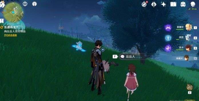 第二个丘丘人:索要的物品为蓝色固体,经测试星螺也可以,估计夜泊石、水晶矿、魔晶矿都行。