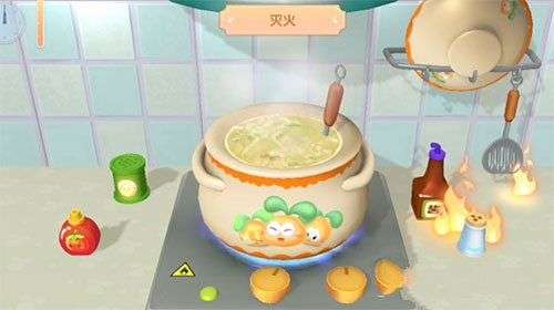 就是你搅拌的时候,速度要快,否则时间不够用就会失败。然后在灭火的时候,一定要动起你的拇指,点击这个火焰,点的越快越好,尽可能在最短时间灭火,不然的话控制不好也会导致失败,从而前功尽弃。