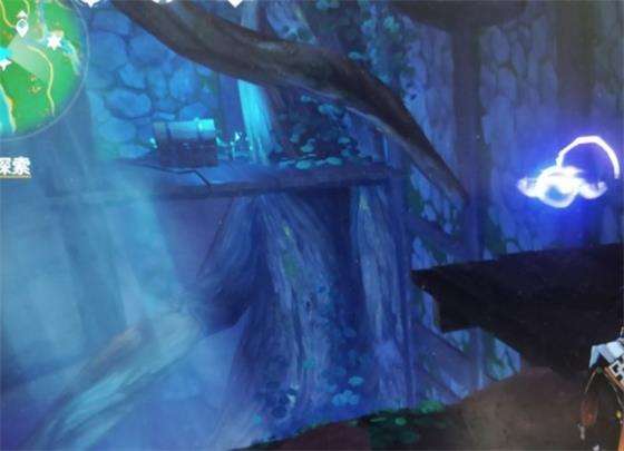 旁边有个雷巨石,可用大剑,岩系技能击破,进去后……,左上角有宝箱如图,跟随雷仙灵,解锁一个普通宝箱