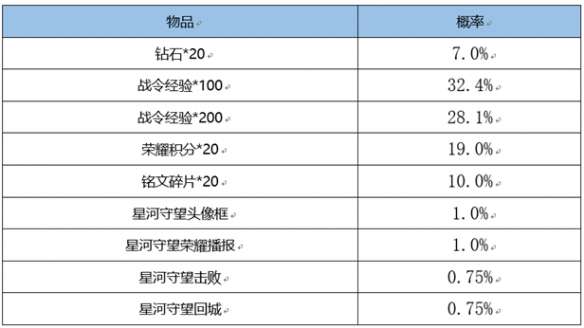 兑换次数:赛季限购120次,累计120次必得星河守望系列全部局内特效及头像框。