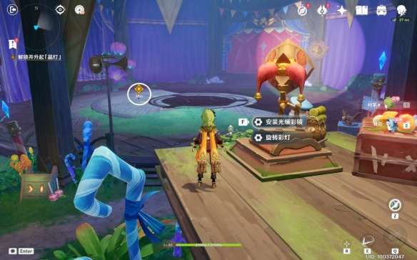 14,来到三层后,我们先往左手边走,放置彩镜并旋转彩灯