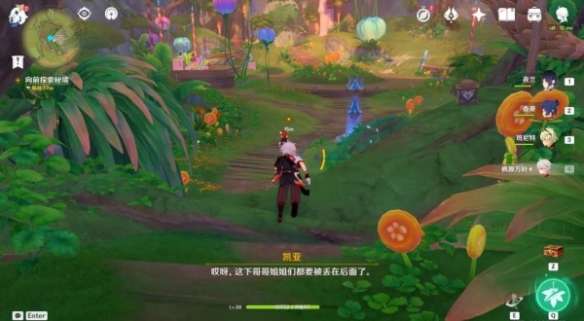 往地图的东南方向飞,前往提纳里住所。找到与优菈和柯莱角色进行对话操作,完成漫长的对话后,触碰瓶子,进入秘境。